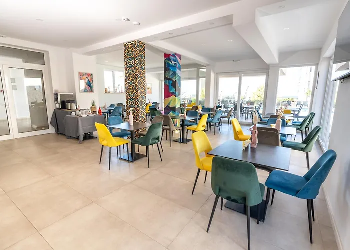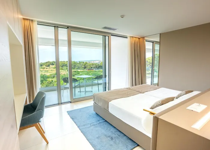 Das 4-Sterne-Kaneo beach hotel Novalja liegt etwa 25 Minuten zu Fuß vom Gajac Strand entfernt und stellt den Swimmingpool, den Whirlpool und die Sauna zur Verfügung.